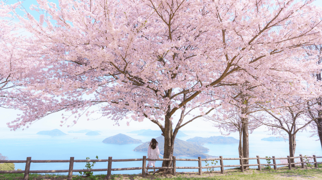 標高352mの山頂から望む瀬戸内海の多島美と桜の景観は、海外のメディアでも紹介され、毎年行われる桜まつりには、国内外から多くの観光客が訪れています。